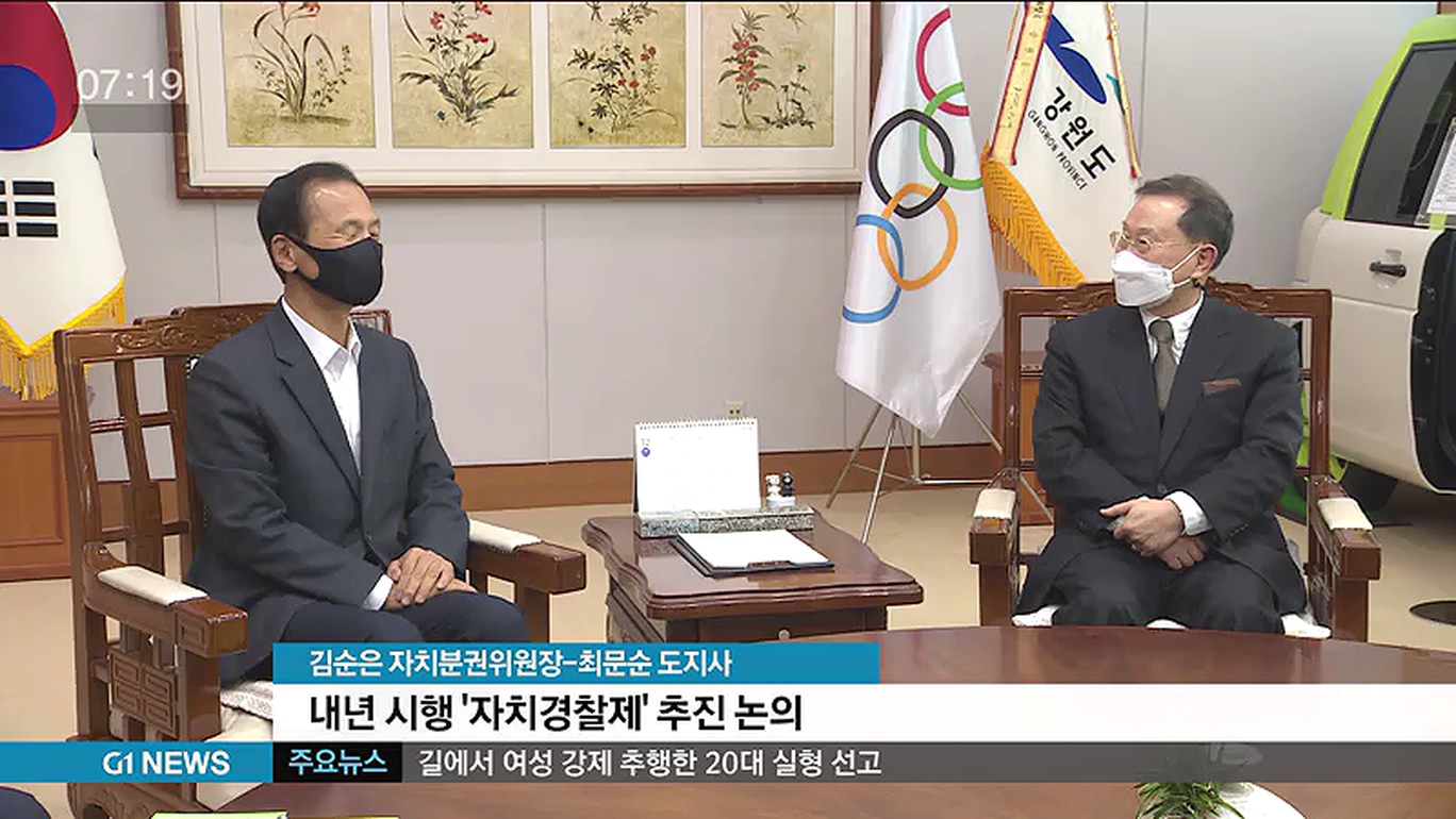 대통령 소속 자치분권위원회 김순은 위원장이 최문순 도지사와 만나 내년부터 추진되는 자치경찰제에 대한 논의를 벌였습니다.