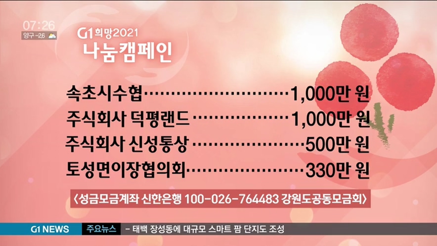 Copyright ⓒ G1방송. All rights reserved. 무단 전재 및 재배포 금지.