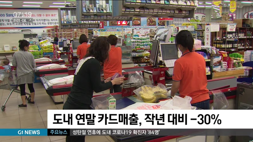 한국신용데이터에 따르면, 12월 3주차 도내 소상공인 카드매출액은 한 달 연속 감소해, 작년 같은 기간보다 30% 가량 적었습니다.