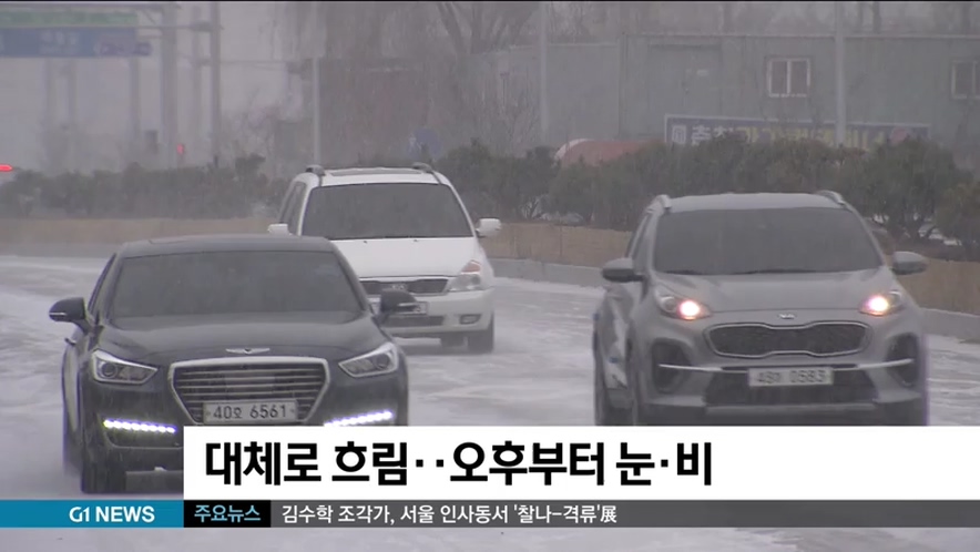 오늘 강원도는 대체로 흐린 가운데, 낮부터 내륙과 산지를 중심으로 눈이나 비가 내리는 곳이 있겠습니다.