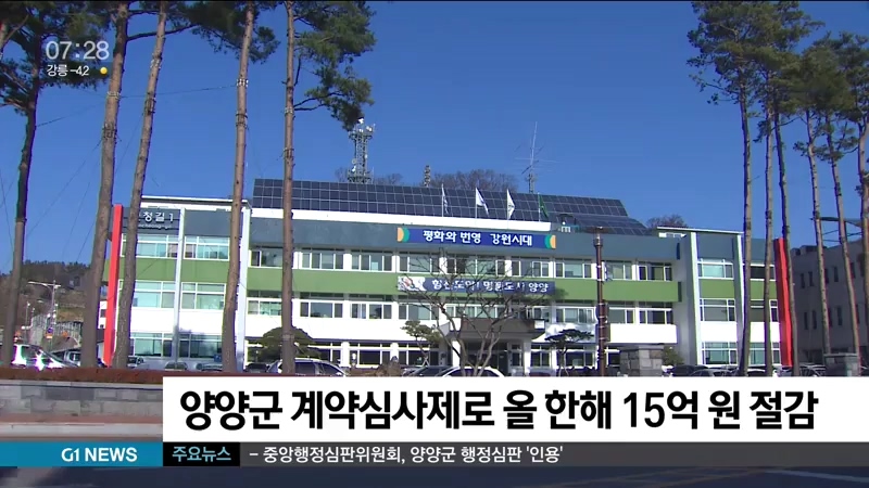 양양군은 계약심사제 운영으로 올 한해 15억 3천여만원의 예산을 절감했다고 밝혔습니다.