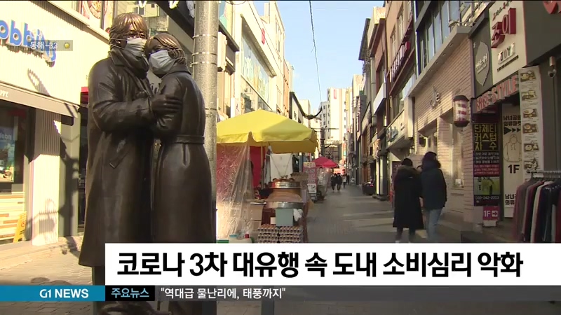 코로나19 3차 대유행 속 경기침체가 심화되면서, 도내 소비심리도 크게 위축된 것으로 조사됐습니다.