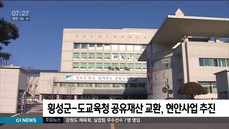 횡성군과 강원도교육청은 공유재산 교환을 통해 양 기관의 현안 사업을 원만하게 추진하기로 하고, 내일(5일) 협약식을 체결합니다.