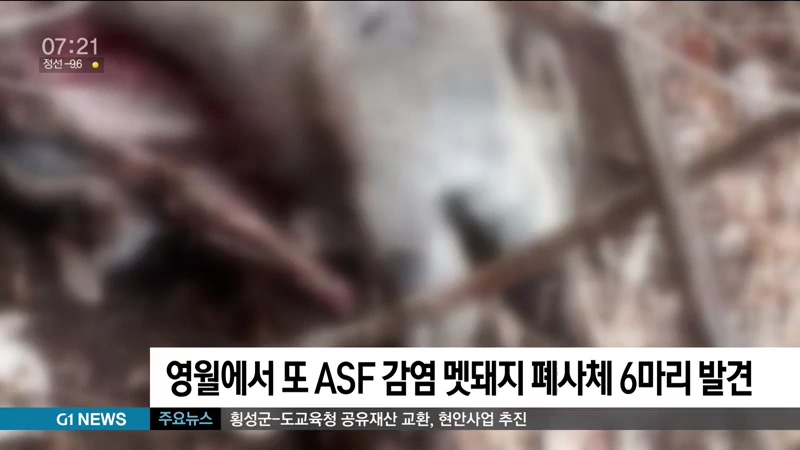 방역당국은 검출 지점에서 4.1km 거리에 위치한 농가의 이동을 제한하고, 영월과 인접한 원주와 횡성, 평창지역 양돈 농가의 차단 방역과 소독을 강화하고 있습니다.