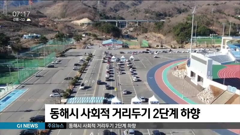동해시가 사회적 거리두기를 2단계로 하향 조정했습니다.