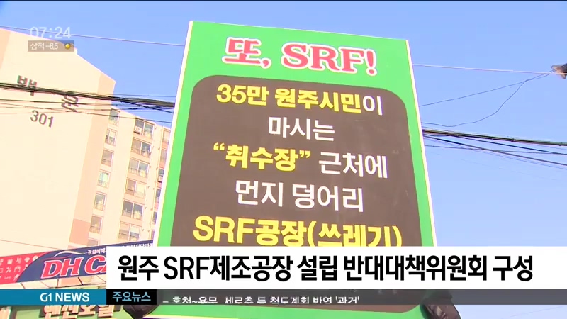 G1 뉴스에서 보도한 원주 SRF 제조공장 설립과 관련해 주민과 기관 단체장으로 구성된 반대대책위원회가 구성됐습니다.