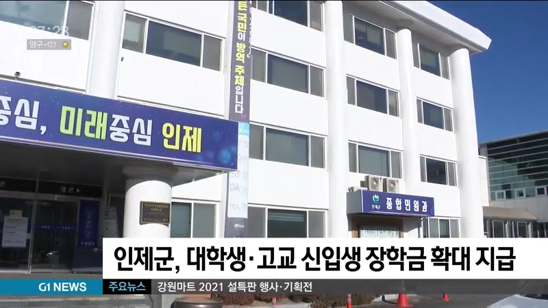 인제군이 지역 출신 대학생과 고교 신입생에게 주는 장학금을 확대하기로 했습니다.