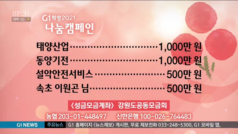 Copyright ⓒ G1방송. All rights reserved. 무단 전재 및 재배포 금지.