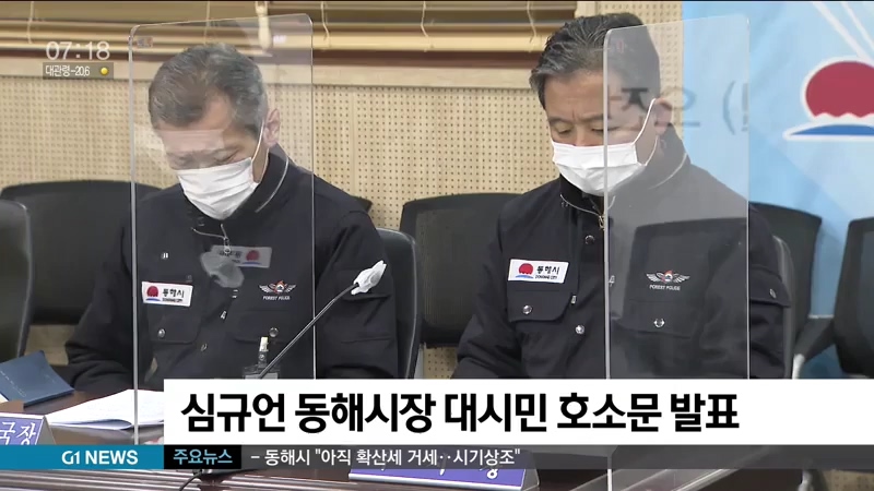 심시장은 호소문에서 현재 동해지역 확진자가 200명에 달할 만큼 확산세가 줄어들지 않고 있고, 감염경로가 파악되지 않은 확진자도 발생하고 있어 전례없는 위기라면서 거리두기 2단계를 1월말까지 유지한다고 밝혔습니다.