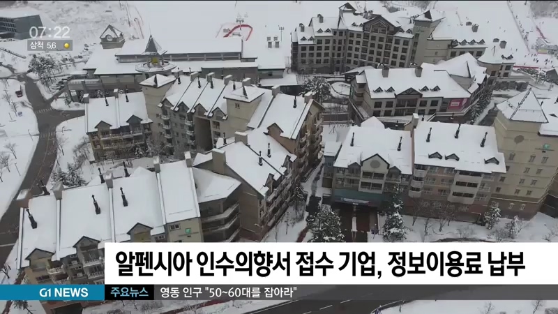 강원도개발공사는 알펜시아리조트 매입을 위한 인수의향서를 제출한 복수의 기업들이 각각 정보이용료 1,100만 원을 모두 납부했다고 밝혔습니다.