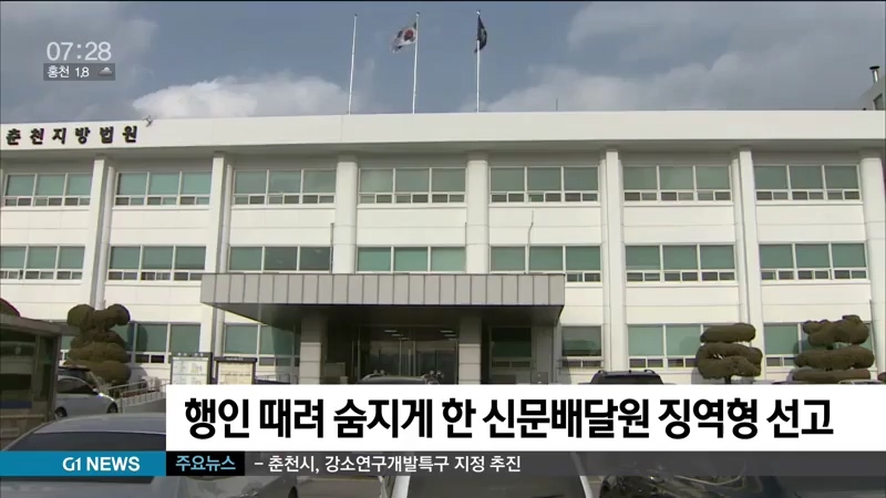 행인 때려 숨지게 한 신문배달원 징역형 선고