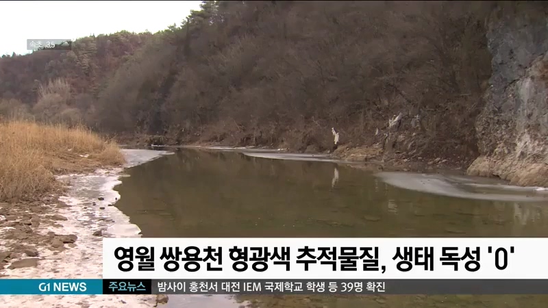 지난 15일 영월군 한반도면 후탄1리 쌍용천에 유입된 형광색 추적물질에 대한 강원도 보건환경연구원의 검사결과, 생태 독성 물질은 발견되지 않은 것으로 나왔습니다.