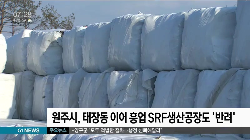 G1뉴스에서 보도한 흥업면 SRF 생산공장 설립에 대해 원주시가 업체가 제출한 사업계획서를 반려했습니다.