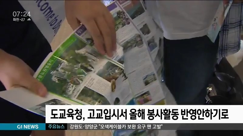 중학생들이 코로나19로 봉사할 곳이 없어 고입 준비에 영향을 받고 있다는 G1 보도와 관련해, 강원도교육청이 대책을 마련했습니다.