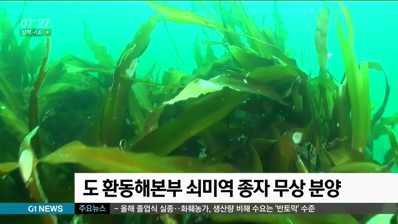 강원도 환동해본부가 오늘(2일)부터 도내 5개 시.군 19개 어촌계에 강원도수산자연연구원에서 자체 생산한 쇠미역 종자를 무상 분양합니다.