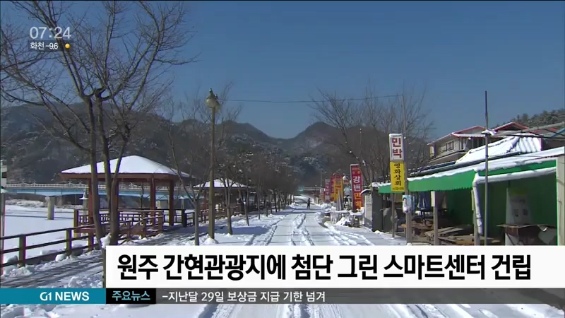 원주시는 환경부의 친환경 청정 한강수계 공모사업에 최종 선정돼 간현관광지에 친환경 첨단 그린 스마트센터를 건립한다고 밝혔습니다.