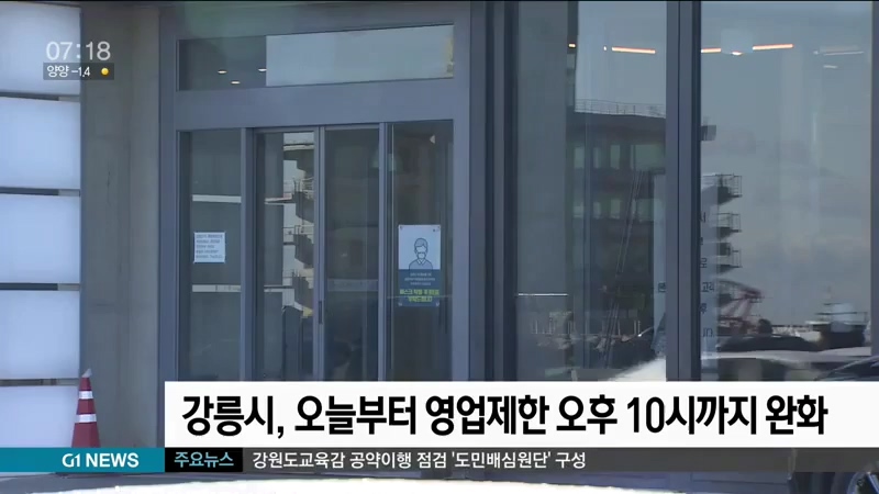 강릉시, 오늘부터 영업제한 오후 10시까지 완화