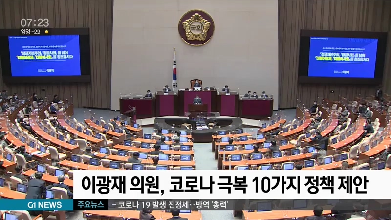 더불어민주당 이광재 의원은 어제, 국회에서 열린 사회.교육.문화 분야 대정부 질문에서 정세균 국무총리 등을 상대로 코로나19 장기화 극복을 위한 10가지 정책을 제안했습니다.