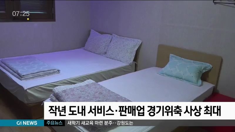 통계청에 따르면, 작년 도내 서비스업 생산지수는 101.8로, 전년 대비 4.9% 떨어져, 전국에서 3번째로 감소폭이 컸습니다.
