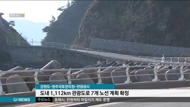 강원도와 원주지방국토관리청, 한국관광공사는 도내 국도와 지방도 등 1,112km 길이의 '강원 관광도로 7개 노선' 종합계획을 수립했다고 밝혔습니다.