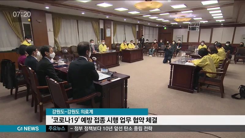강원도와 강원도병원협회, 강원도의사회, 강원도간호사회는 도청에서 업무협약을 맺고, '코로나19' 예방 접종의 안전하고 신속한 시행을 위해 함께 노력하기로 했습니다.