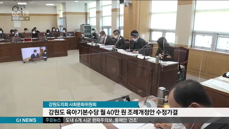 강원도의회는 강원도에서 지급하는 육아기본수당을 기존 월 30만원에서 40만원으로 인상하기로 한 조례 개정안을 수정·가결했습니다.