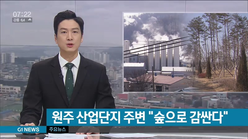 원주시가 지역에서 발생하는 미세먼지를 효과적으로 줄이기 위해, 산업단지 주변을 숲으로 감싸는 사업을 벌이고 있습니다.