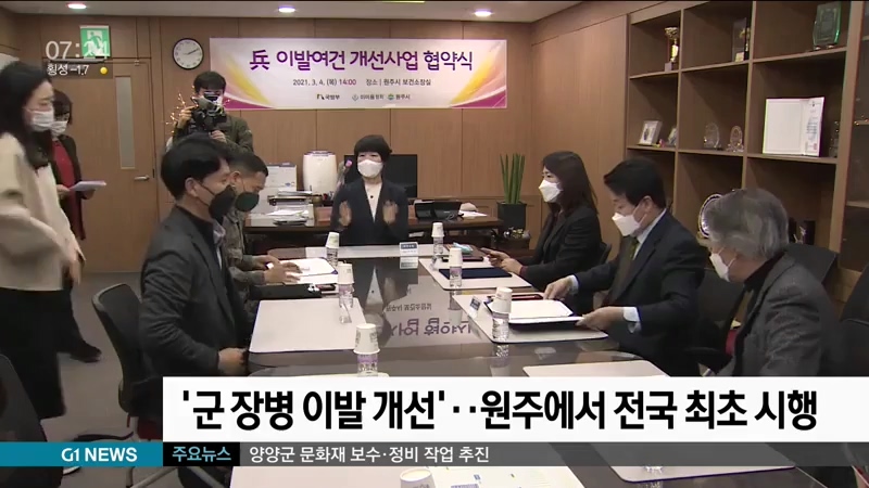 원주시와 지역 군부대, 원주시 이미용지부는 어제(4일) 원주시 보건소장실에서 전국에서 처음으로 군 장병 이발 여건 개선을 위한 업무협약을 맺었습니다.