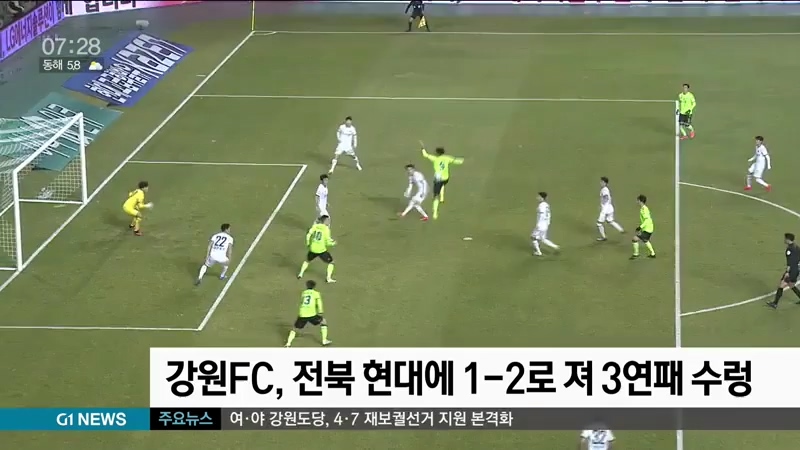 강원 FC는 어제(9일) 전주 월드컵경기장에서 열린 '하나원큐 K리그1 2021 시즌' 전북 현대와의 3라운드에서 1대 2로 역전패를 당했습니다.