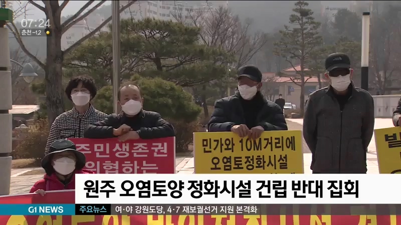 원주시 지정면 주민 30여 명은 어제(9일) 원주시청 앞에서 집회를 열고, 지난해 말 사업계획서가 접수된 지정면 안창리의 오염 토양 반입·정화시설 건립을 반대한다고 밝혔습니다.