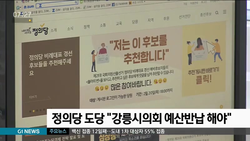 정의당 도당 "강릉시의회 예산 반납해라"