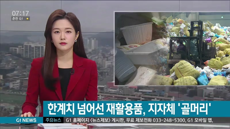 "끝 간 데 없이 늘어나는 재활용 쓰레기를 감당하기 위해, 다같이 줄이고 제대로 버리는 노력이 절실한 때입니다. G1뉴스 원석진입니다."