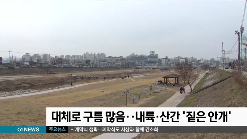 대체로 구름 많음..내륙.산간 '짙은 안개'