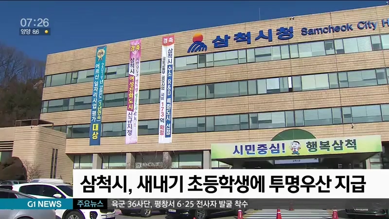 삼척시는 새내기 초등학생들에게 투명우산 500개를 지급합니다.