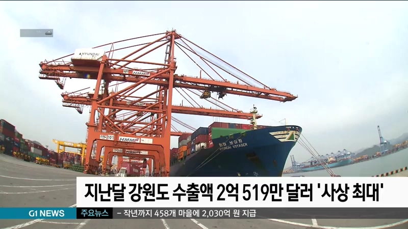 지난달 강원도 수출액 2억 519만 달러 '사상 최대'