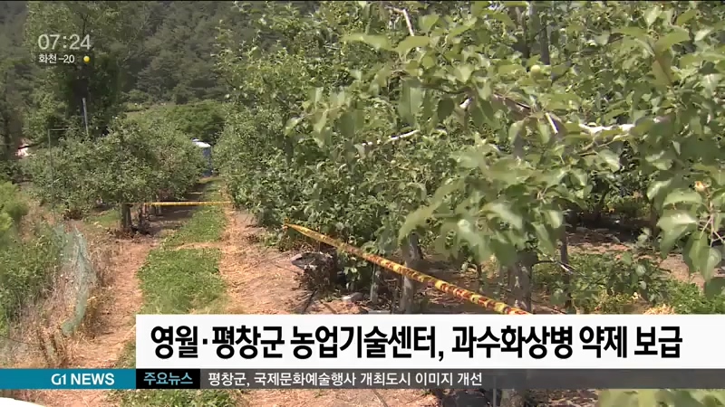 영월군과 평창군 농업기술센터는 식물방역법상 법정 금지병인 과수화상병 예방·차단을 위해 사과·배 재배 농가 322곳에 사전 방지 약제를 무상 보급합니다.