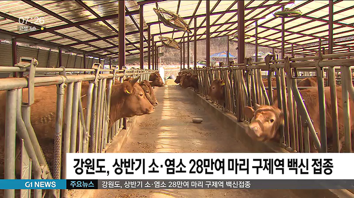 강원도는 다음달(4월)부터 한달동안 도내에서 사육중인 소와 염소 28만여 마리에 대한 구제역 백신 접종을 추진합니다.