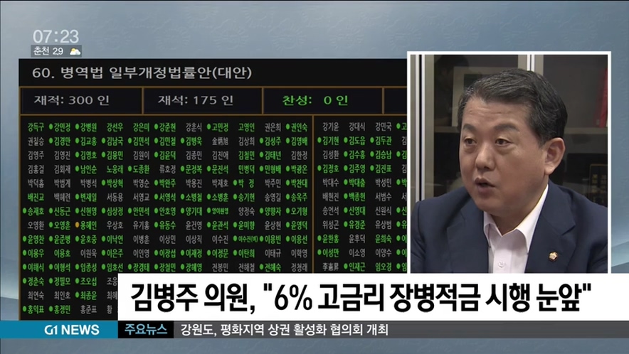 강릉 출신 더불어민주당 김병주 의원이 대표 발의한 병역법 개정안이 어제 국회 본회의를 통과해, 장병내일준비적금에 가입한 군 장병들에게 추가 금리 혜택이 주어지게 됩니다.