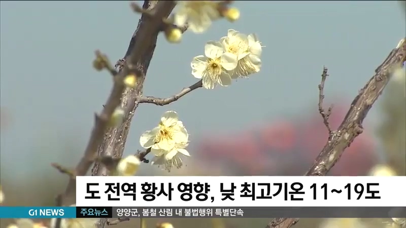 도 전역 황사 영향, 낮 최고기온 11~19도