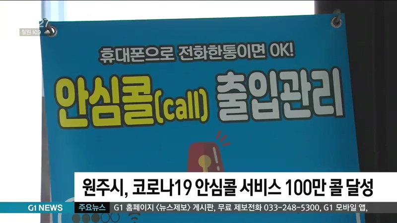 원주시는 지난달 다중 이용시설을 대상으로 확대 실시한 코로나19 출입 등록 '안심콜' 서비스가 한달 만에 100만 콜을 달성했다고 밝혔습니다.