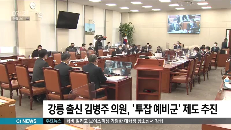 강릉출신 더불어민주당 김병주 의원은 평시에도 근무할 수 있는 예비군 병력을 확보하기 위해, 평시 복무 예비군 제도법안, 일명 '투잡 예비군법'을 대표발의했습니다.