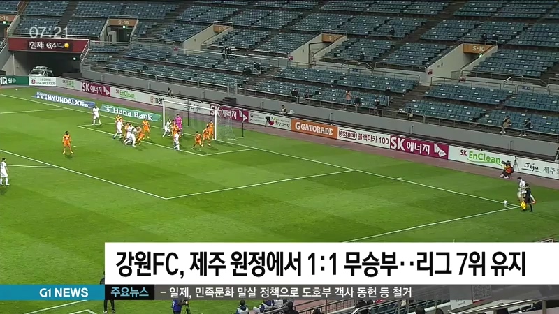 강원FC, 제주 원정에서 1:1 무승부..리그 7위 유지