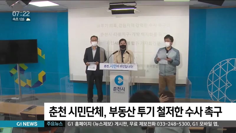 "강원경찰청은 조속한 시일 안에 중간 수사를 발표하라"며 "강원도와 각 시군은 7급 공무원 이상과 시의원에 대한 부동산 거래 내역을 전수 공개하라"고 주장했습니다.