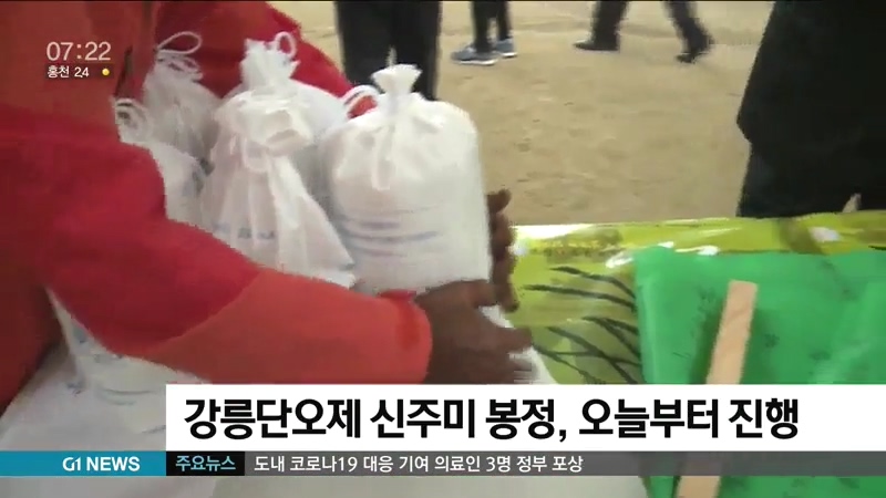 신주미 봉정은 강릉단오제 신주용 쌀을 기부하는 행사로, 한 자루당 3kg을 헌미하면 단오제에서 신주 한 병을 받을 수 있습니다.
