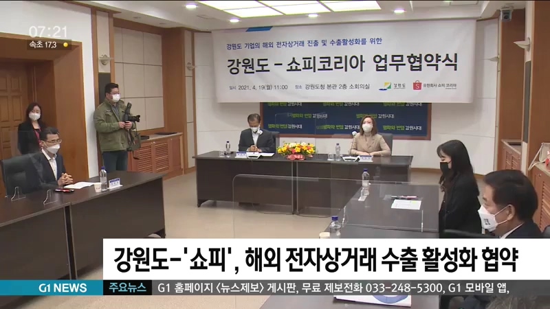 강원도와 쇼피코리아는 강원도청에서 '도내 기업 해외 전자상거래 진출-수출활성화' 업무 협약을 체결하고 상호 협력을 약속했습니다.