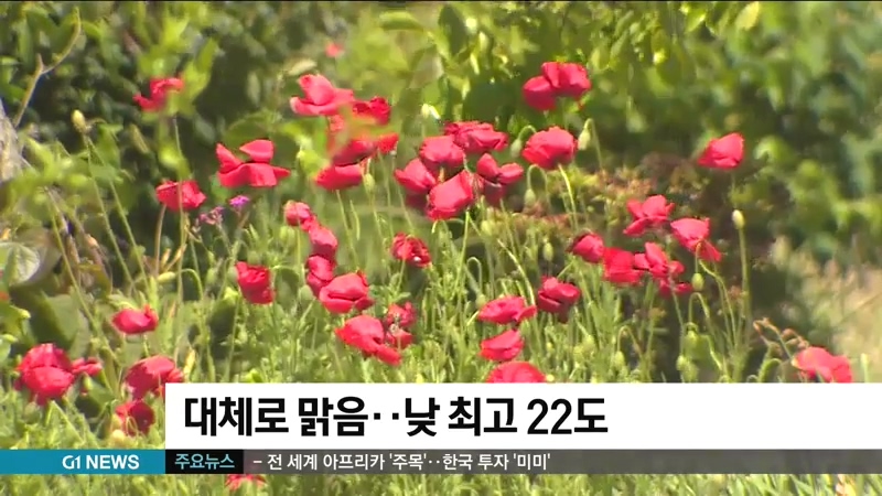 낮 최고 기온은 16도에서 22도의 분포로 어제와 비슷하겠습니다.
