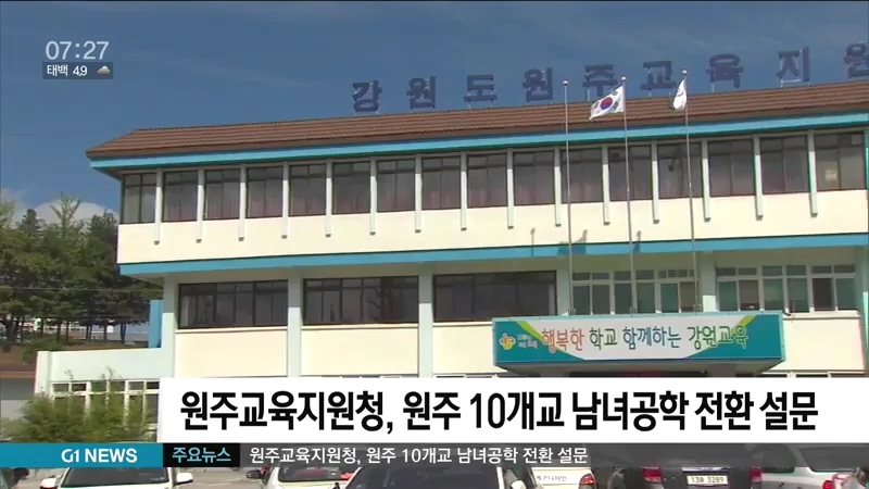 원주교육지원청은 원주 지역 내 중고등학교 10곳의 남녀공학 추진을 위해 학부모와 교직원을 대상으로 한 설문조사를 실시하기로 했습니다.