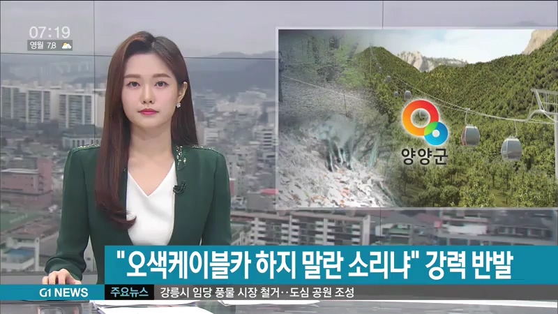 오색케이블카는 환경부의 재보완 요구에다 환경단체 반발까지 여전해 현 정부 내 착공은 어려울 전망입니다. G1뉴스 정동원입니다.