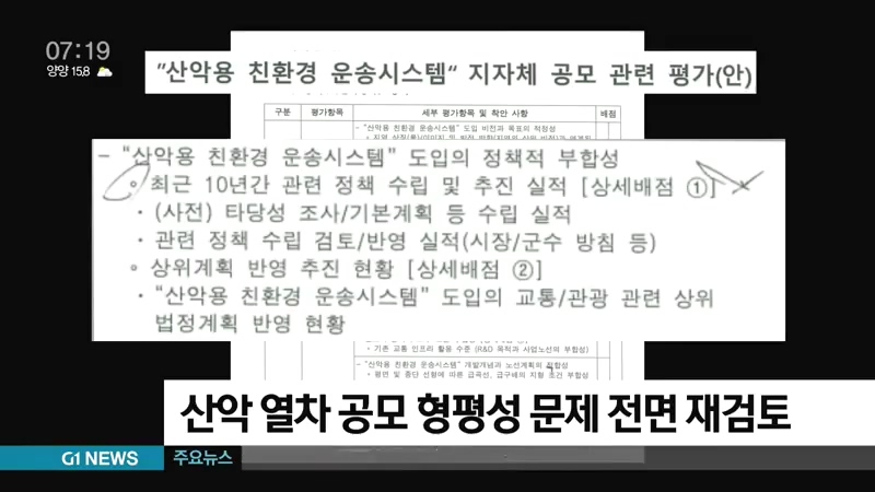 국내 최초로 도입되는 산악 열차 공모 사업이 특정 지자체에 유리하게 진행되고 있다는 G1보도 이후 한국철도기술연구원이 개선점을 마련하기로 했습니다.