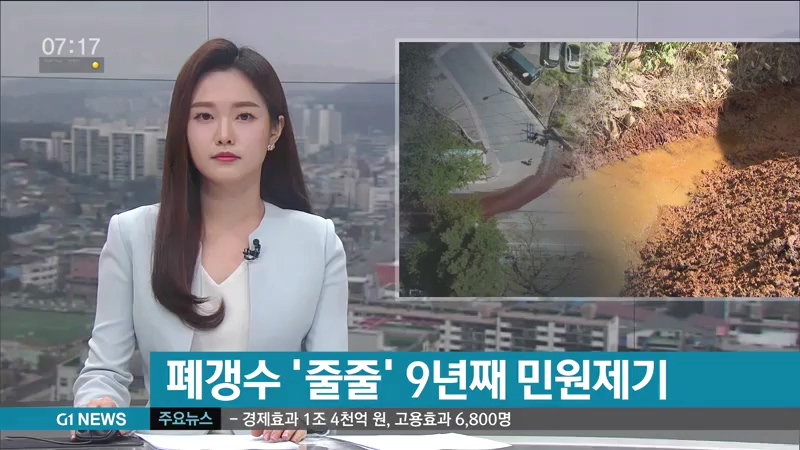 "보시는 것처럼 오랜시간 아무런 정화장치 없이 폐갱수가 그대로 도로로 흘러들면서 이렇게 도로 색이 아예 변해버렸습니다."